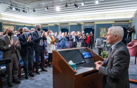 NOTICE HOW FAUCI CAN’T REACH THE PODIUM AT A NORMAL LEVEL